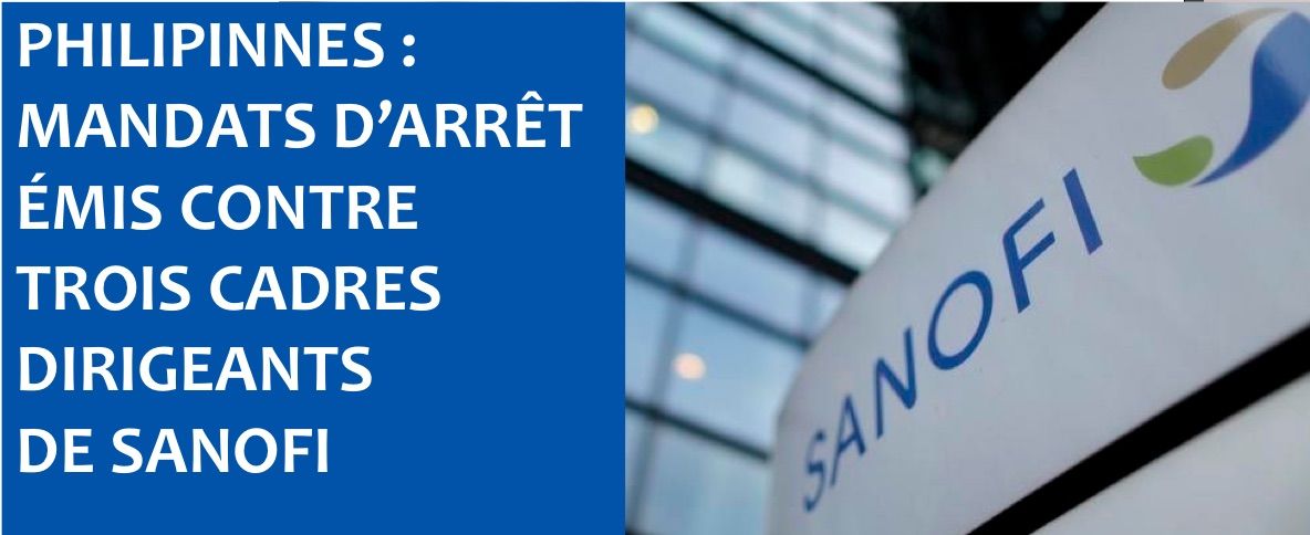 Le groupe français n’avait probablement pas besoin de ça ! A Manille, où la justice continue d’enquêter sur la campagne de vaccination contre la Dengue et ses effets secondaires mortels supposés, trois des dirigeants du laboratoire qui, le 27 janvier dernier, ne se sont pas rendus à une convocation qui leur avait été signifié, sont désormais l’objet de mandats d’arrêt. Stanislas Camart, Jean Louis Grunwald et Jean Francois Vacherand, mandats signés par le juge Jose Bautista. Jean Louis Grunwald est le VP de Sanofi Pasteur en charge de la Région Asie Pacifique. Ces mandats d’arrêts ont été transmis à l’Ambassade française…